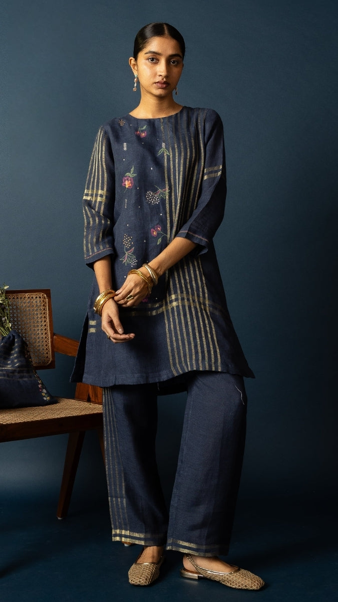 Navy Linen Zari Set