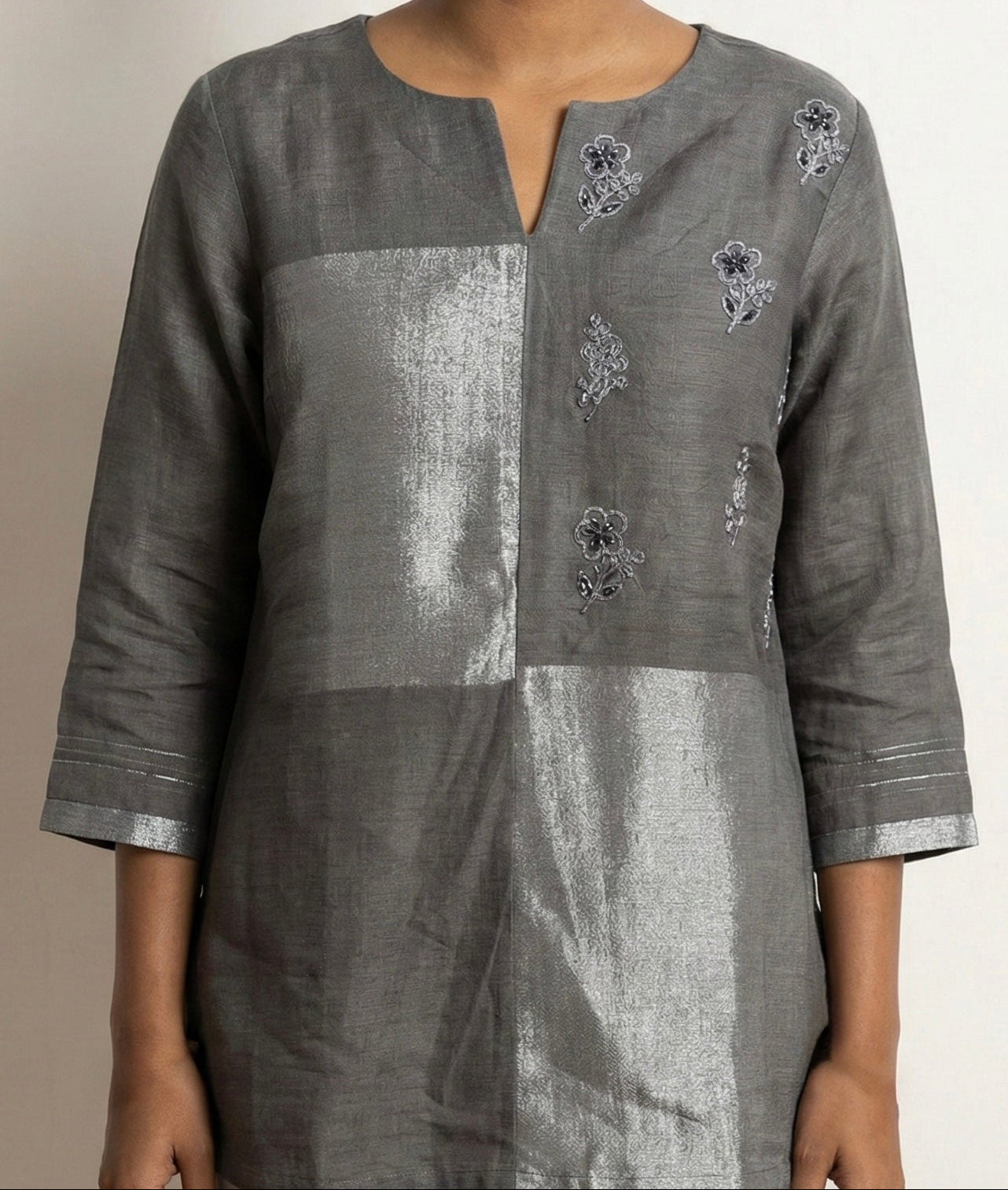 Charcoal Grey Zari Linen Set