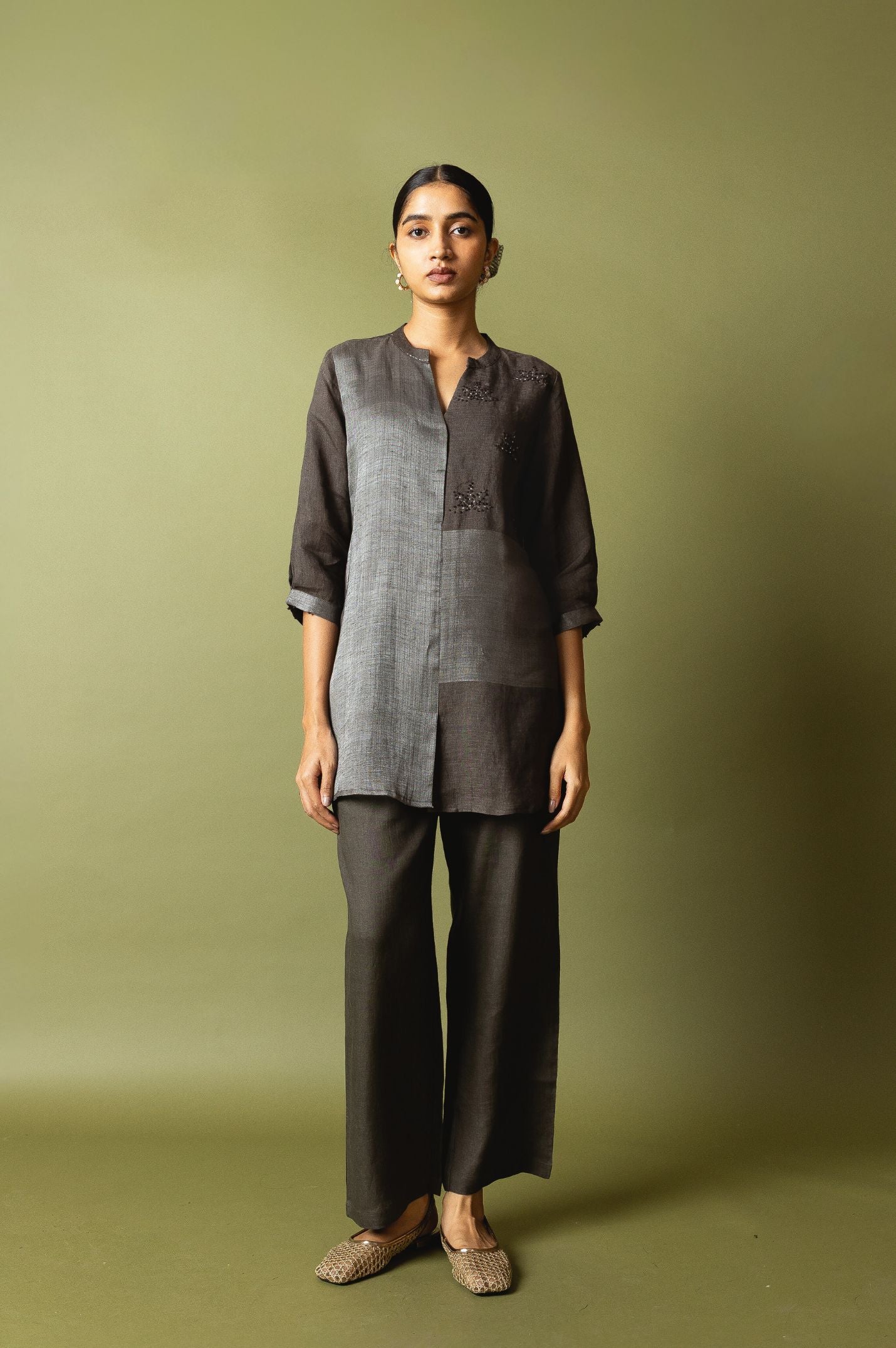 In a palette of soft blush, this 100% linen Kurta sets from our noor collection showcases clean geometric block prints elevated with delicate embroidery. The muted tones and artisanal detailing come together in a look defined by quiet elegance.