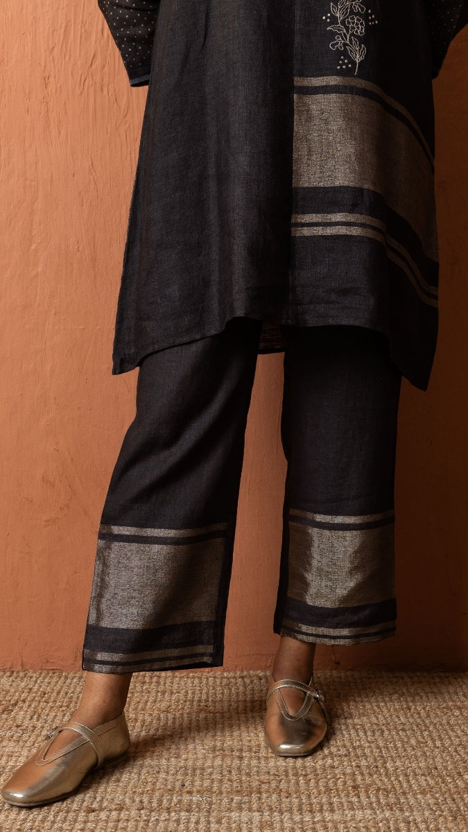 Woven in 100% linen, this ivory co-ord stands out with thoughtfully spaced, meticulously crafted zari placements that illuminate the garment with quiet sophistication. Our community's Favourite from the Jashn collection as embodies the spirit of quiet luxury.